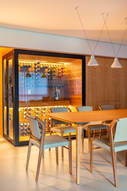 O projeto assinado pelo escritório Beta Arquitetura ganhou estilo moderno, chique e despojado e uma adega para 300 garrafas