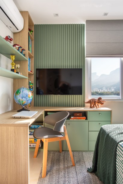 “Nada foi aproveitado da estrutura original, nem mesmo o piso de taco. Até o hall do elevador foi renovado. Os clientes queriam tudo novo para recomeçar a vida em seu último imóvel, já que não pretendem mais sair de lá”, conta Bernardo. “Esse apego não é por menos. Afinal, até a cozinha e os quartos têm vista do Cristo Redentor”, brinca a sócia Tânia.