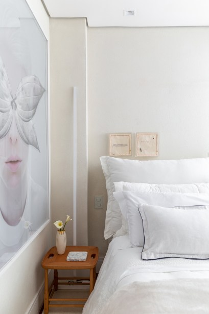 Uma grande tela do artista Marcelo Solá dá o tom irreverente do imóvel. Todo o mobiliário é de design brasileiro assinado com peças de Jader Almeida, Sérgio Rodrigues, estudiobola e Latoog, entre outros.