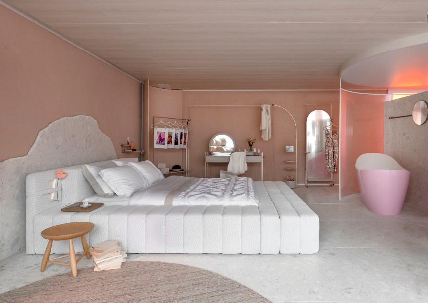 Uma parede colorida pode fazer toda a diferença no seu espaço – e os profissionais da CASACOR sabem muito bem disso. Com o mobiliário neutro, a parede ganhou liberdade para ser criativa e alegre, sem deixar o aconchego de lado. Observe a tonalidade de verde escolhida por Marcelo Salum e o rosa queimado pincelado por Juliana Loffi no seu espaço.