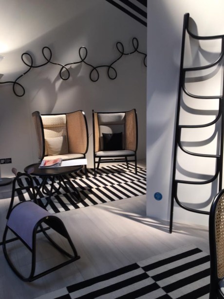 Cadeiras com espaldar alto e que te encerram num universo particular, como um abraço, sempre me seduziram. Quase coloquei essas sob o braço e saí correndo com elas. São da Wiener GTV Design, empresa austríaca, com desenho de Gamfratesi.